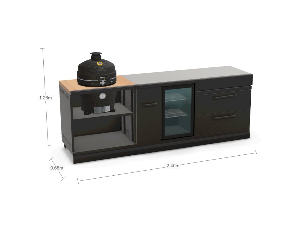 Na dĺžke 2,40 m tak získate kamado gril, chladenie nápojov aj bohatý úložný priestor v jednotnom antracitovom dizajne.