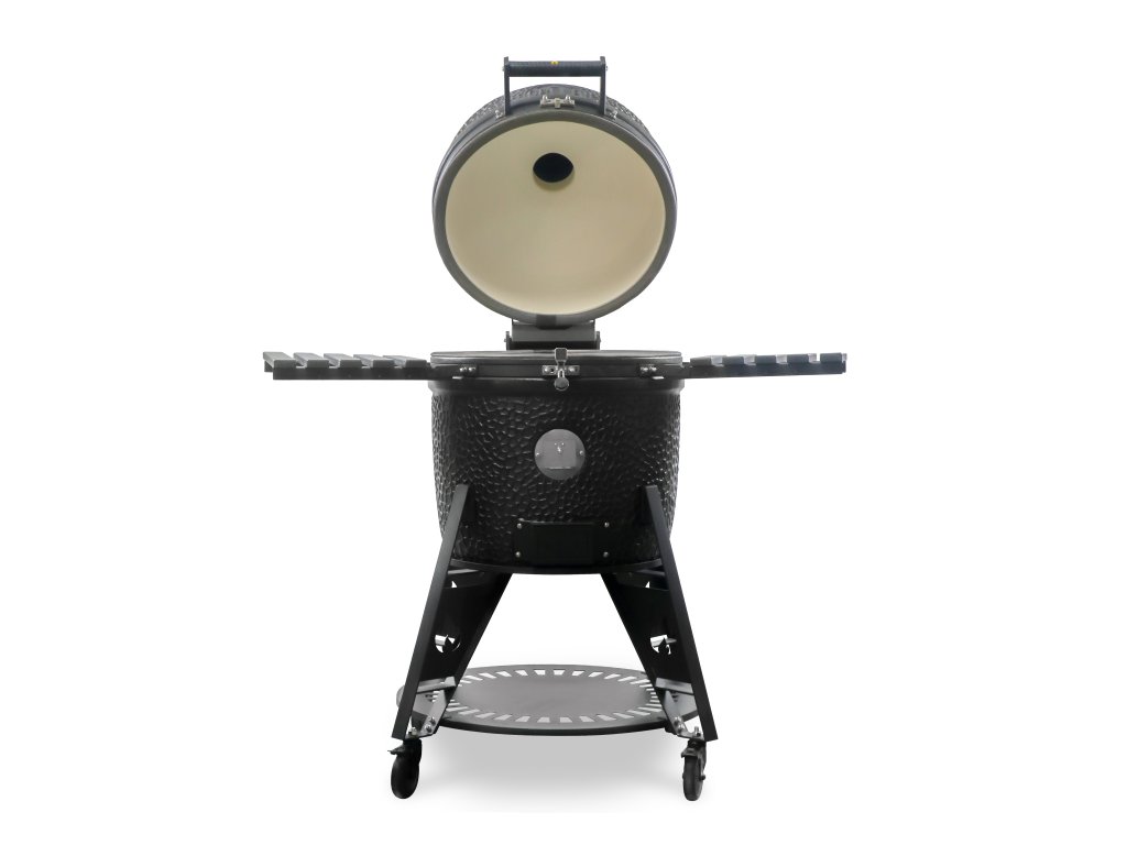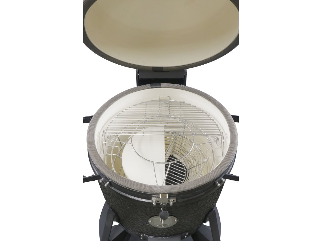 Telo z vysokokvalitnej keramiky s vlastnou glazúrou výborne akumuluje teplo a drží stabilnú teplotu celé hodiny. Rozdelené ohnisko umožňuje pracovať s priamou aj nepriamou zónou súčasne – ideálne na kombináciu prudkého opekania a pomalého pečenia.