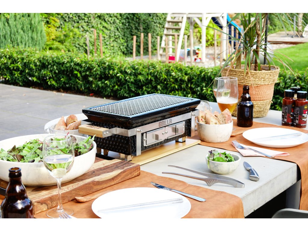 Obdĺžnikový stolový BBQ z odolnej keramiky výborne akumuluje teplo a bočné vetracie otvory zabezpečujú ideálne prúdenie vzduchu. Je ako stvorený na príjemné spoločné chvíle pri stole s rodinou a priateľmi – s dobrým jedlom, vôňou grilovania a praskaním uhlíkov.