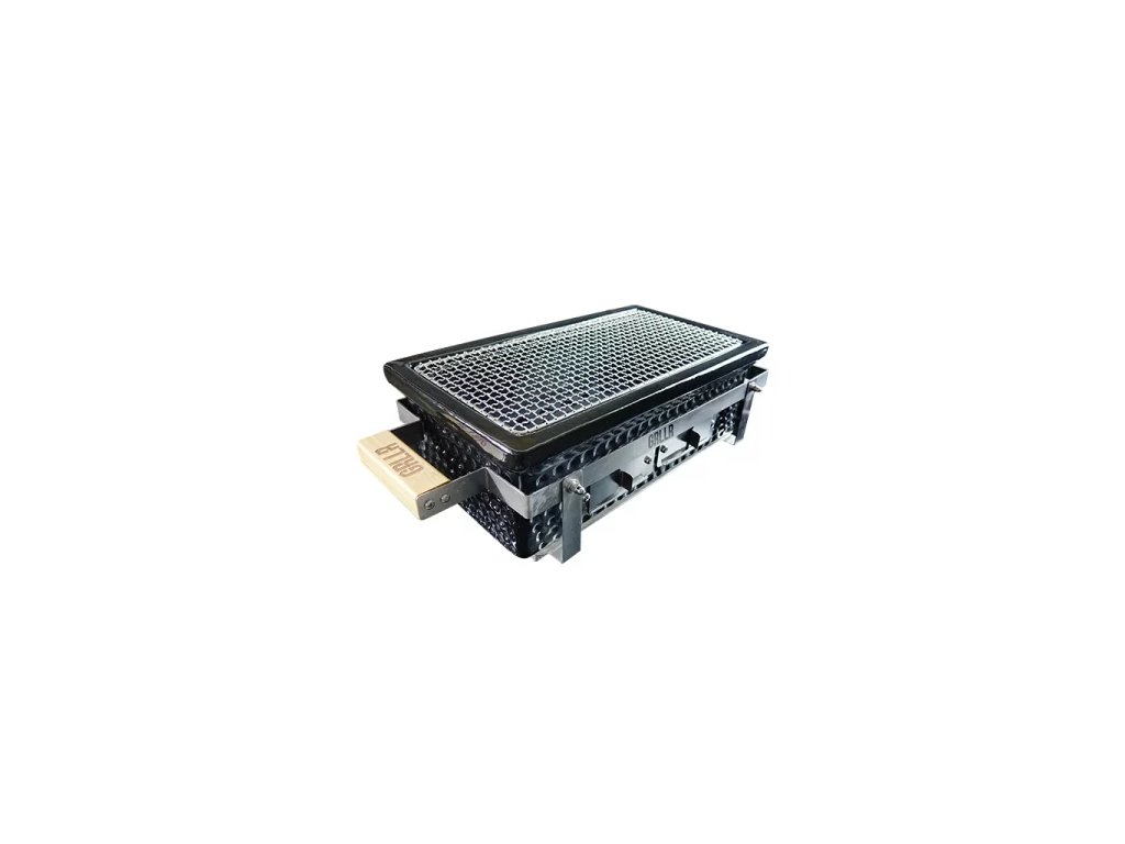 | Konštrukcia | Obdĺžnikový stolový gril s bočnými vetracími otvormi |