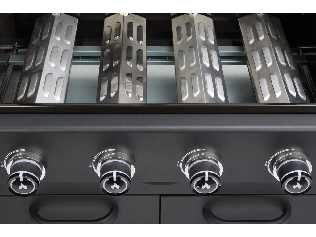 Izolované veko s priehľadným okienkom vám umožní pohodlne sledovať pripravované jedlo bez neustáleho otvárania. Nerezové flame tamers / flavour bars zlepšujú chuť a znižujú riziko vzplanutí.